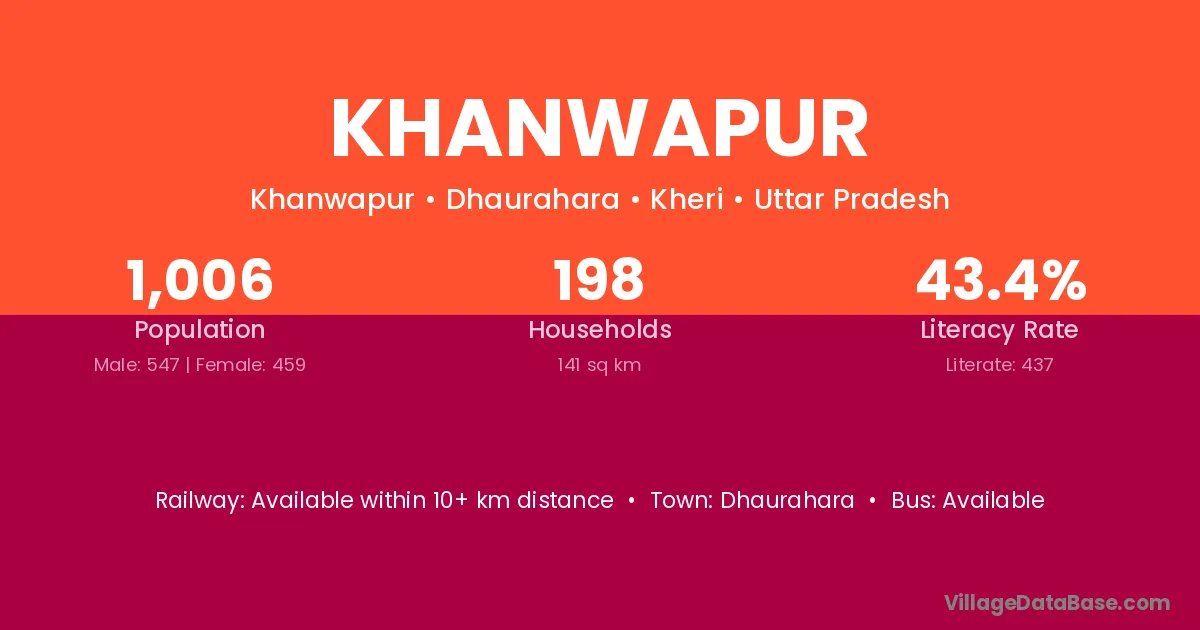 Khanwapur village has a total population of 1,006 people, of which 547 are males and 459 are females.