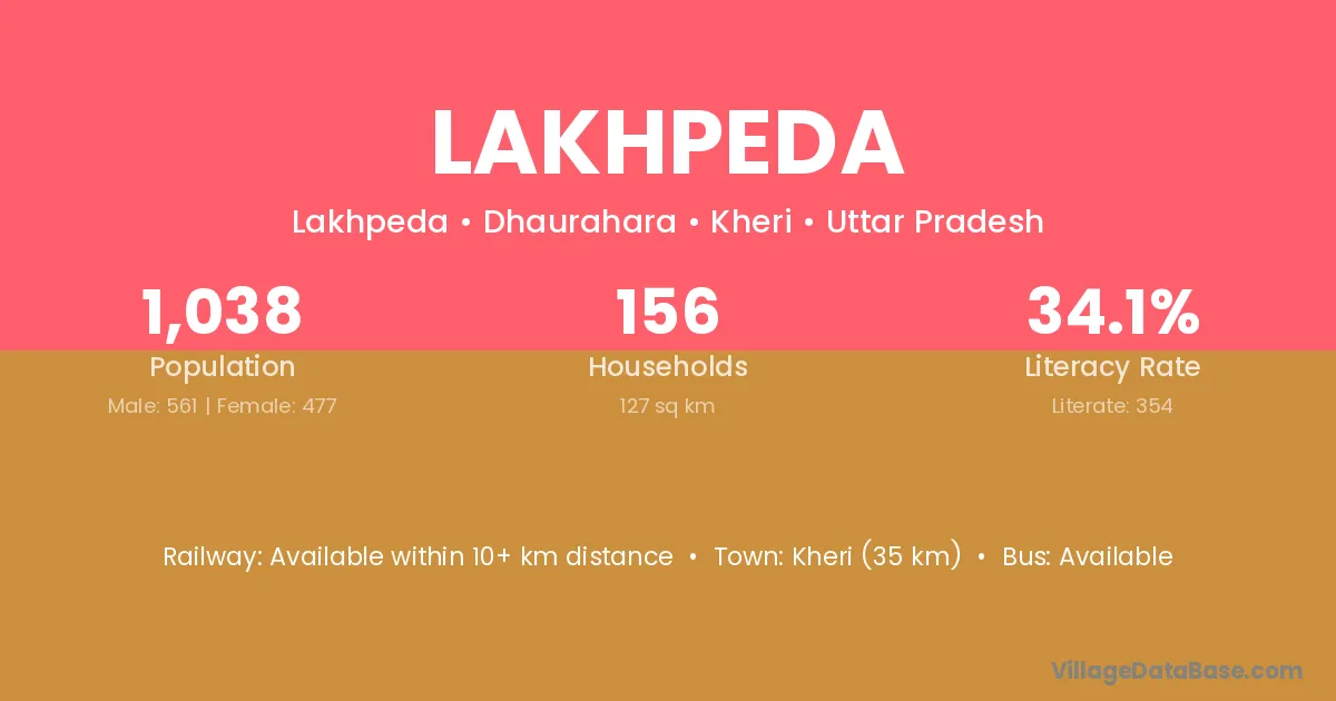 Kheri (35 km) is the nearest town to Lakhpeda village for major economic activities and is located approximately 35 km away.