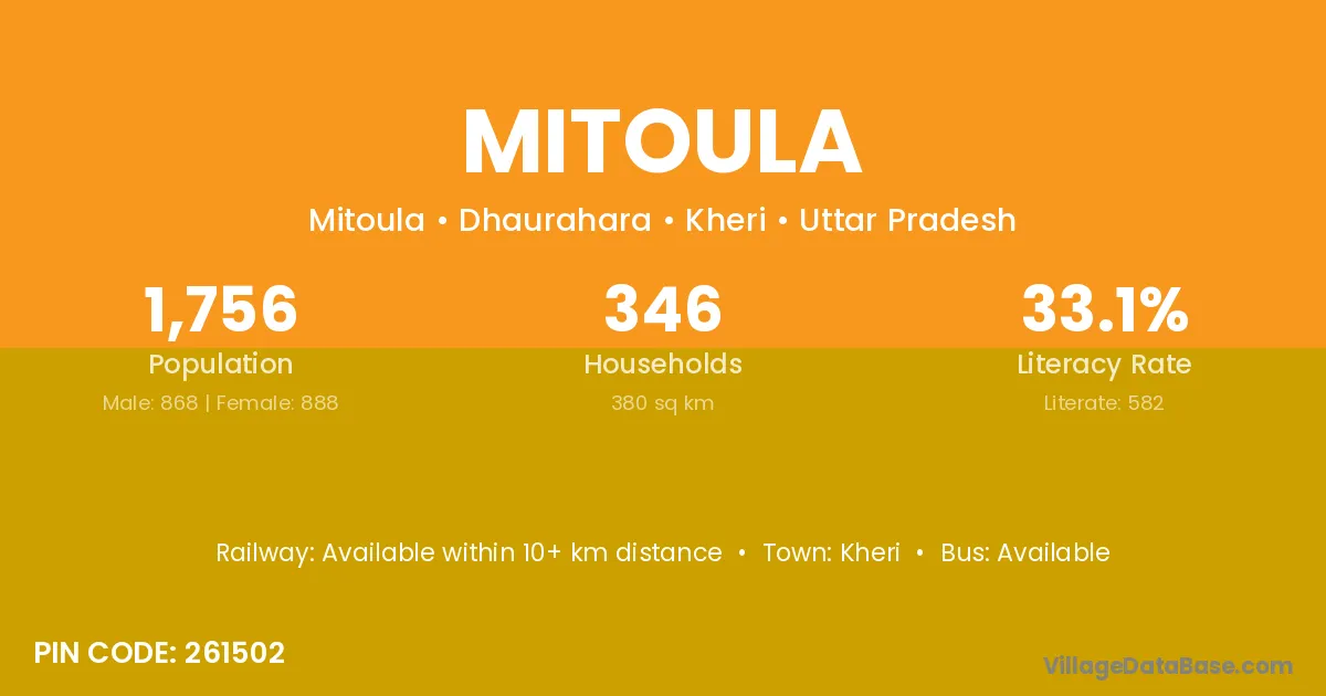 Mitoula village is located in the Dhaurahara Tehsil of the Kheri district in Uttar Pradesh .
