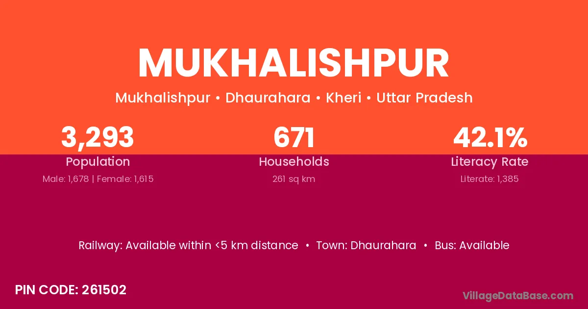 Mukhalishpur village has a total population of 3,293 people, of which 1,678 are males and 1,615 are females.