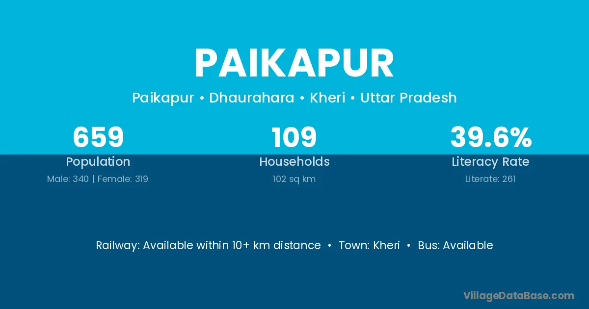Paikapur village has a total population of 659 people, of which 340 are males and 319 are females.