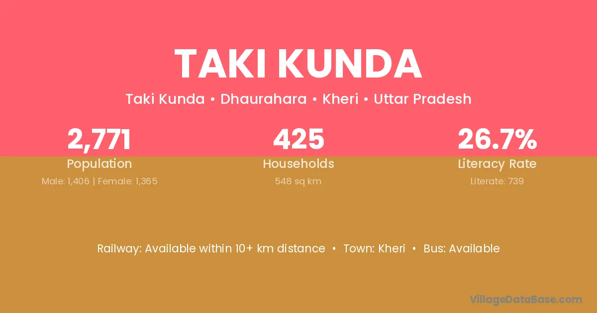 Kheri is the nearest town to Taki Kunda village for major economic activities