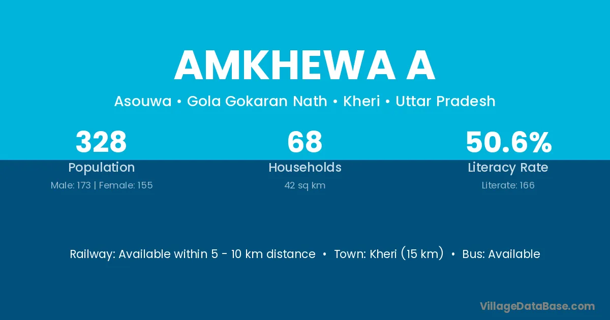 Kheri (15 km) is the nearest town to Amkhewa A village for major economic activities and is located approximately 15 km away.