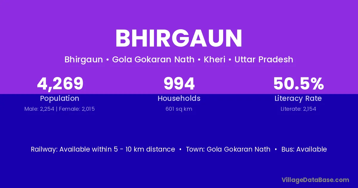 Gola Gokaran Nath is the nearest town to Bhirgaun village for major economic activities