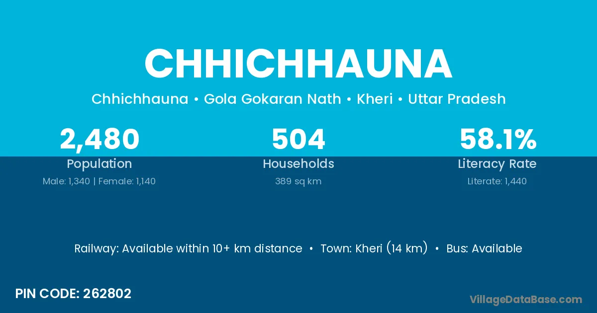 Kheri (14 km) is the nearest town to Chhichhauna village for major economic activities and is located approximately 14 km away.
