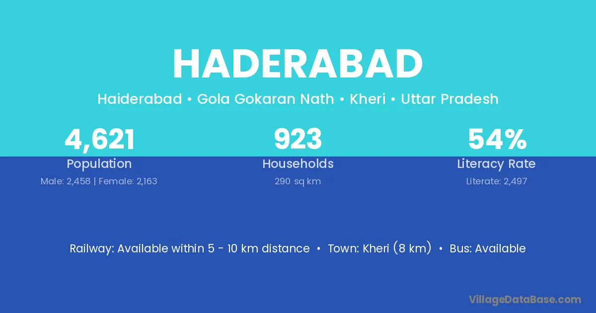 Haderabad village is located in the Gola Gokaran Nath Tehsil of the Kheri district in Uttar Pradesh .