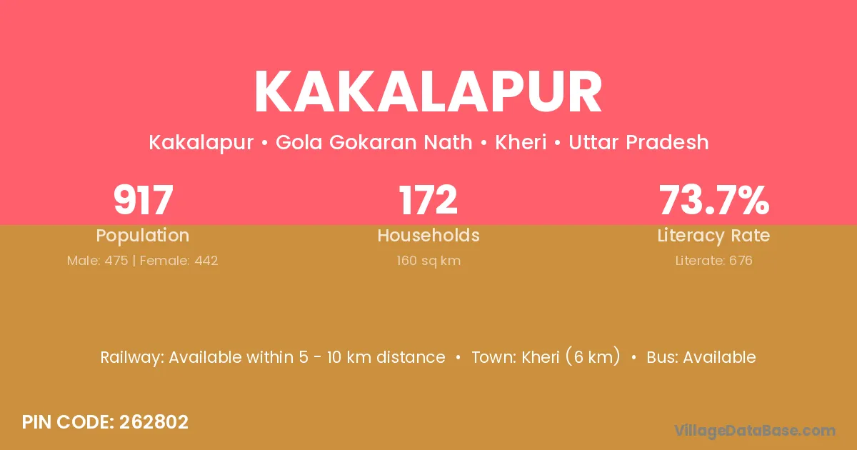 Kheri (6 km) is the nearest town to Kakalapur village for major economic activities and is located approximately 6 km away.