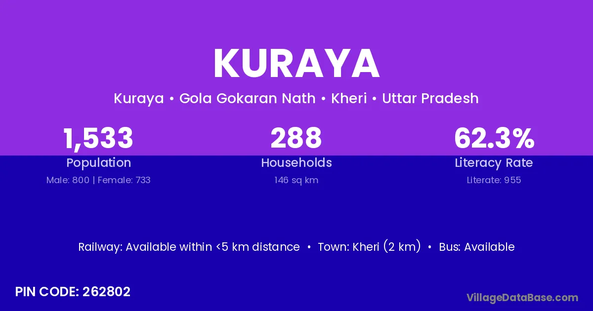Kuraya village has a total population of 1,533 people, of which 800 are males and 733 are females.