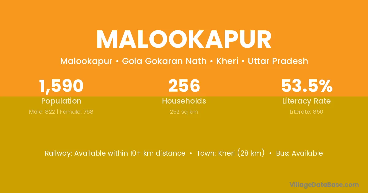 Kheri (28 km) is the nearest town to Malookapur village for major economic activities and is located approximately 28 km away.