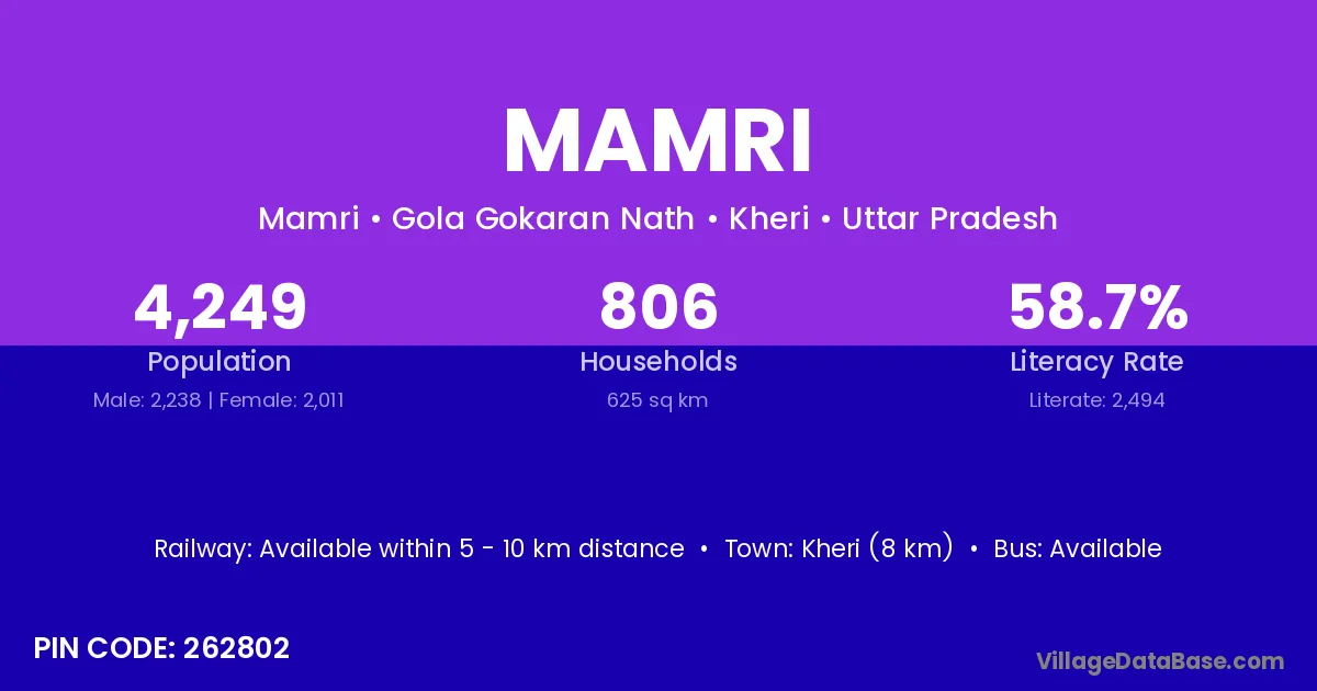 Mamri village is located in the Gola Gokaran Nath Tehsil of the Kheri district in Uttar Pradesh .