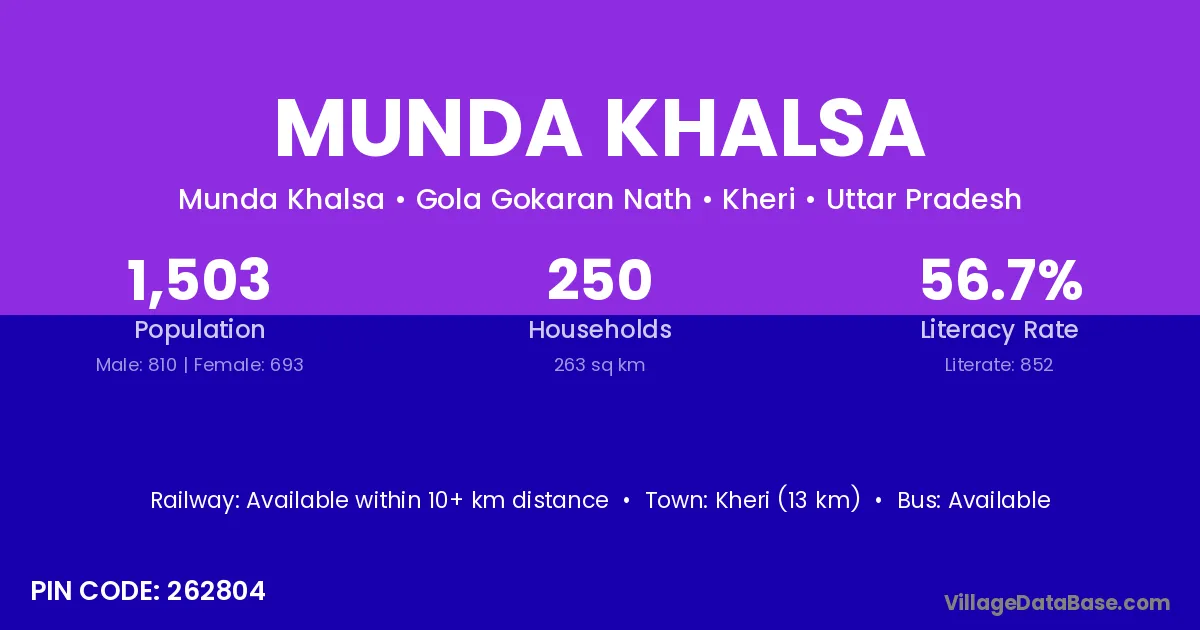 Kheri (13 km) is the nearest town to Munda Khalsa village for major economic activities and is located approximately 13 km away.