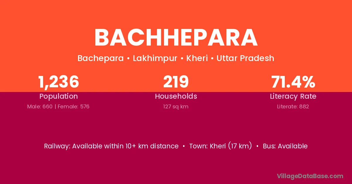 Kheri (17 km) is the nearest town to Bachhepara village for major economic activities and is located approximately 17 km away.