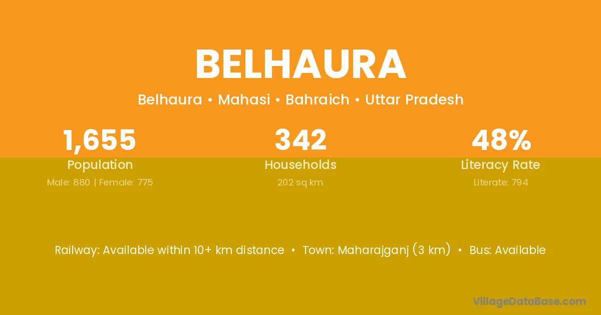 Belhaura village has a total population of 2,495 people, of which 1,356 are males and 1,139 are females.