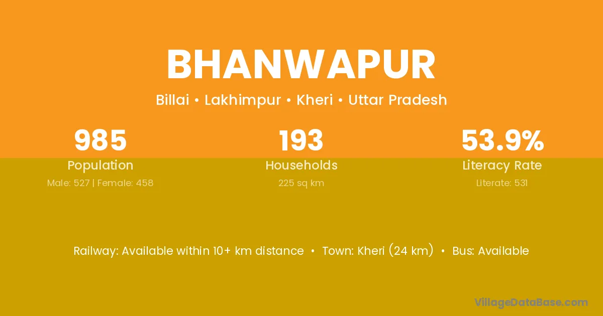 Kheri (24 km) is the nearest town to Bhanwapur village for major economic activities and is located approximately 24 km away.