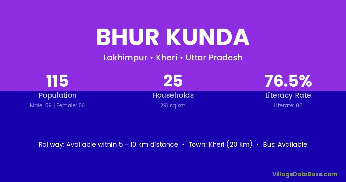 Kheri (20 km) is the nearest town to Bhur Kunda village for major economic activities and is located approximately 20 km away.