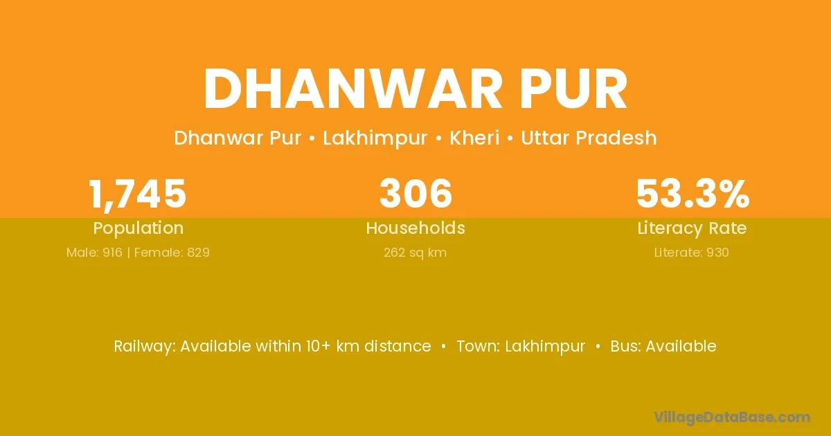 Dhanwar Pur village has a total population of 1,745 people, of which 916 are males and 829 are females.