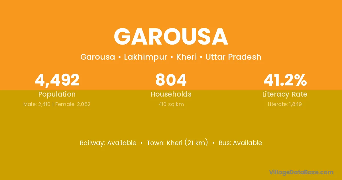 Garousa village is located in the Lakhimpur Tehsil of the Kheri district in Uttar Pradesh .