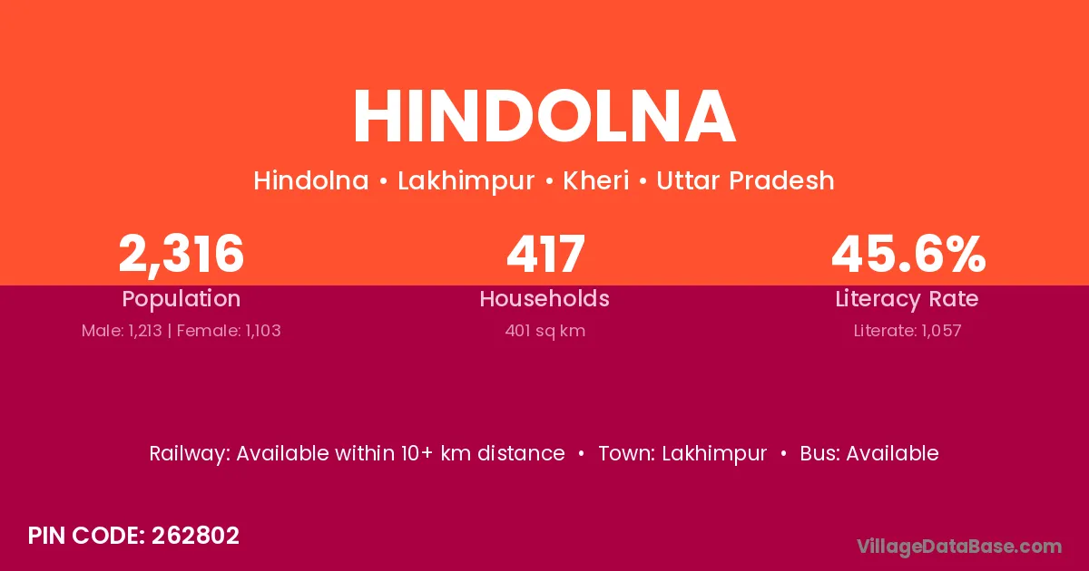 Lakhimpur is the nearest town to Hindolna village for major economic activities