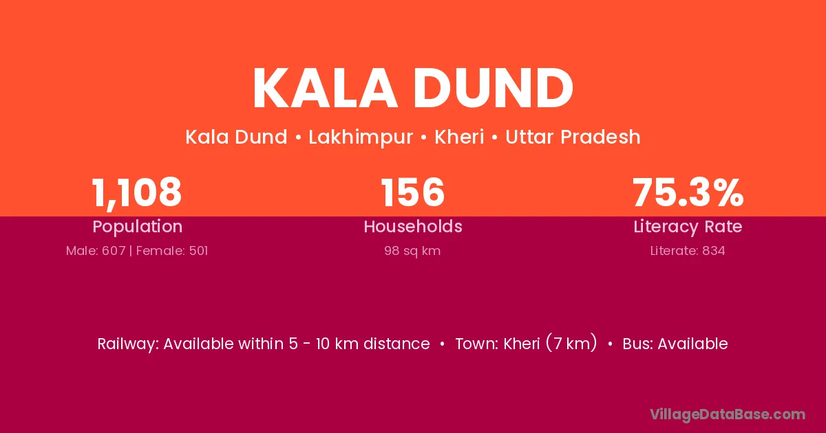 Kala Dund village has a total population of 1,108 people, of which 607 are males and 501 are females.