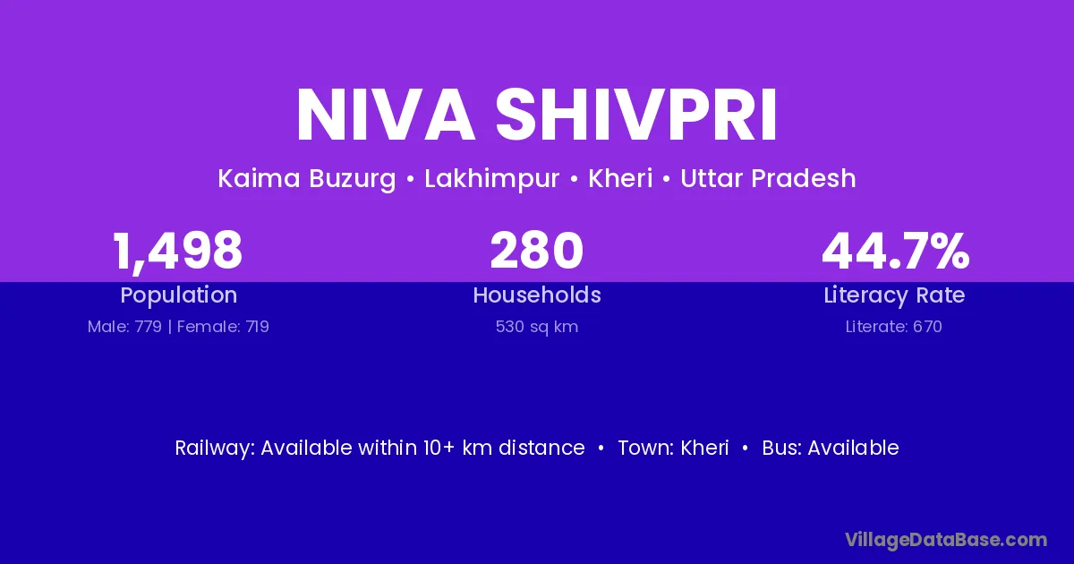 Niva Shivpri village has a total population of 1,498 people, of which 779 are males and 719 are females.