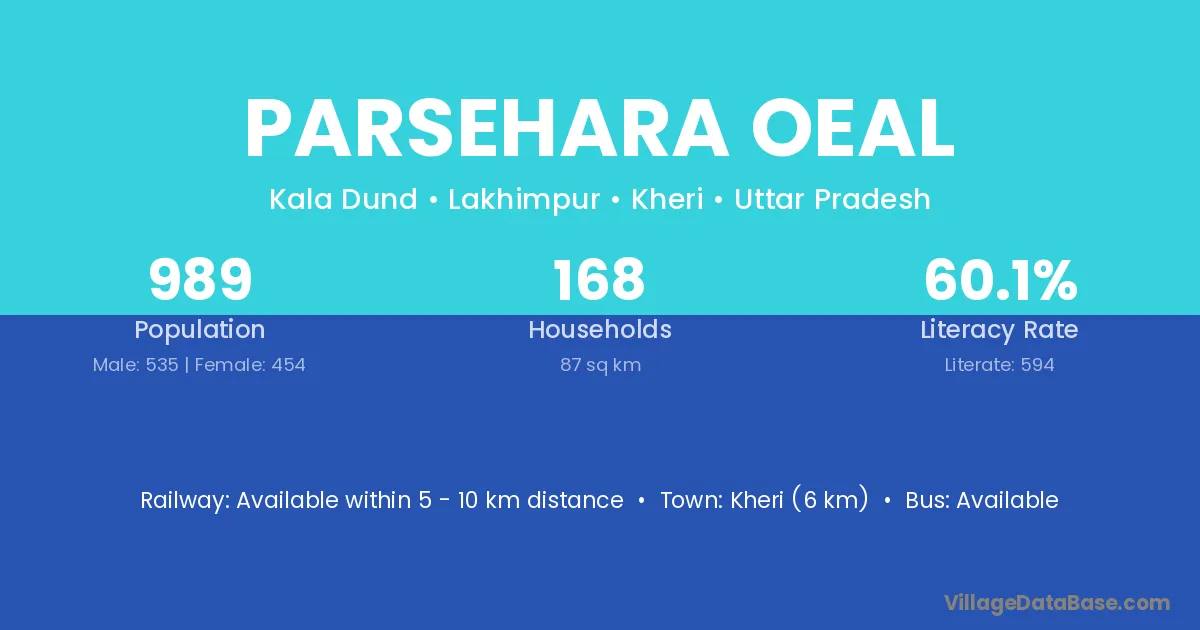 Kheri (6 km) is the nearest town to Parsehara Oeal village for major economic activities and is located approximately 6 km away.