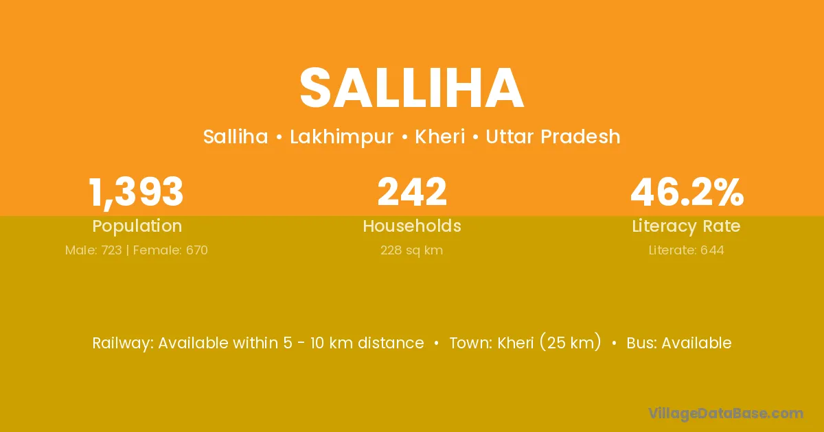 Salliha village has a total population of 1,393 people, of which 723 are males and 670 are females.