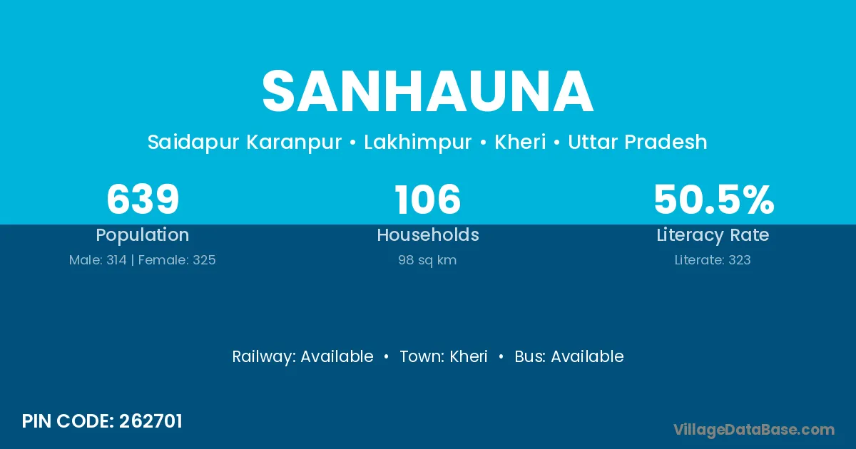 Kheri is the nearest town to Sanhauna village for major economic activities