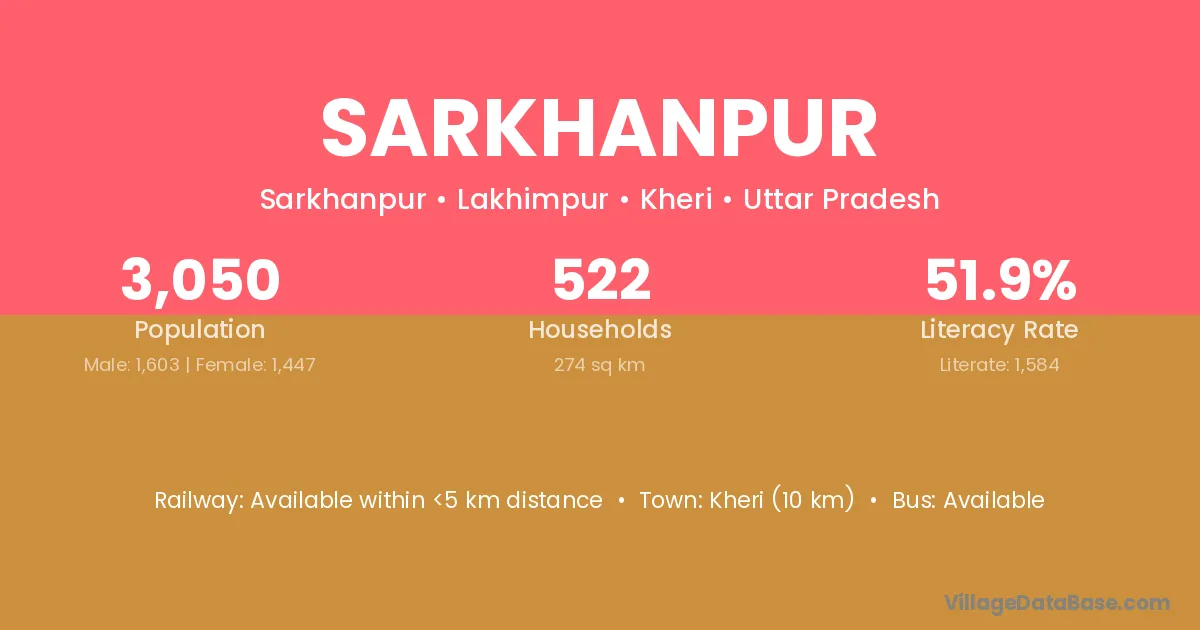 Kheri (10 km) is the nearest town to Sarkhanpur village for major economic activities and is located approximately 10 km away.