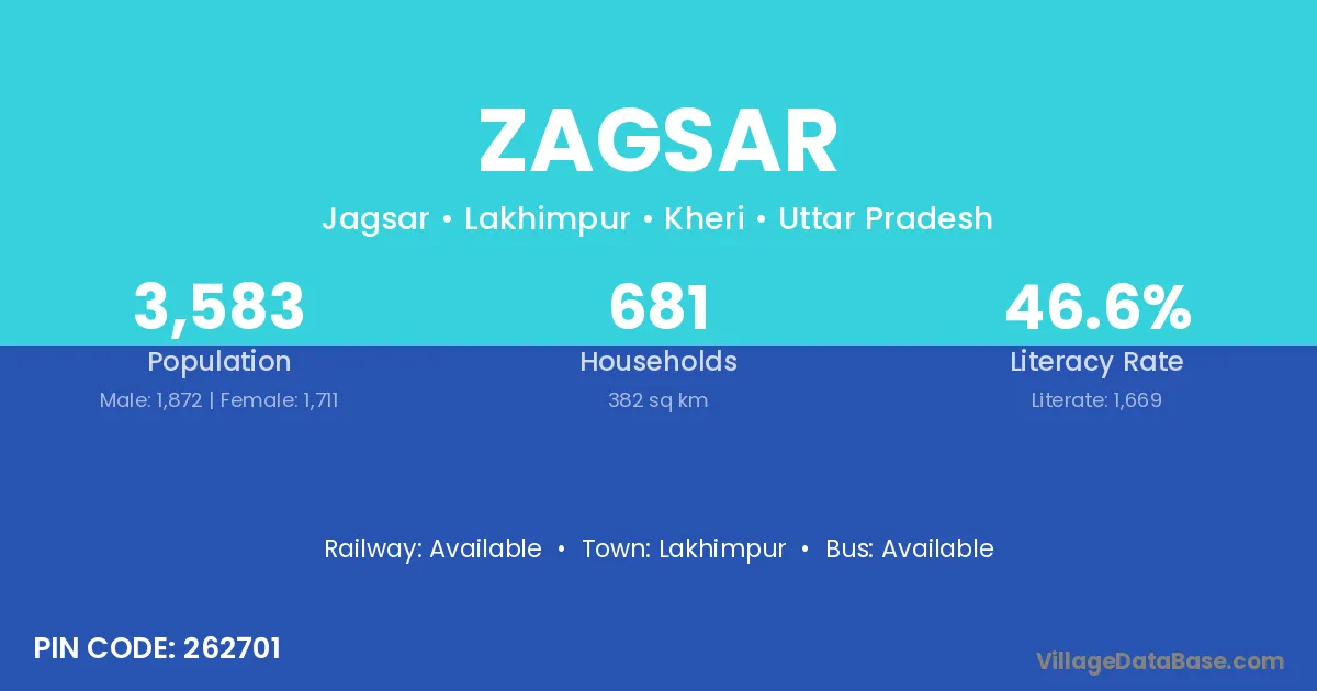 Zagsar village is located in the Lakhimpur Tehsil of the Kheri district in Uttar Pradesh .