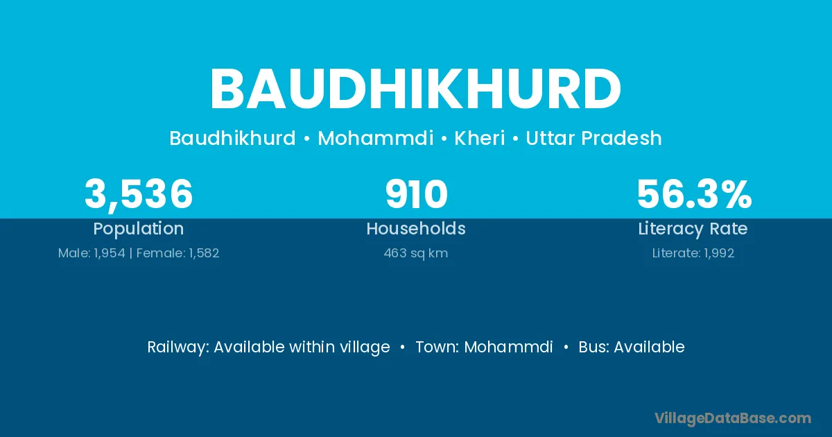Baudhikhurd village has a total population of 3,536 people, of which 1,954 are males and 1,582 are females.