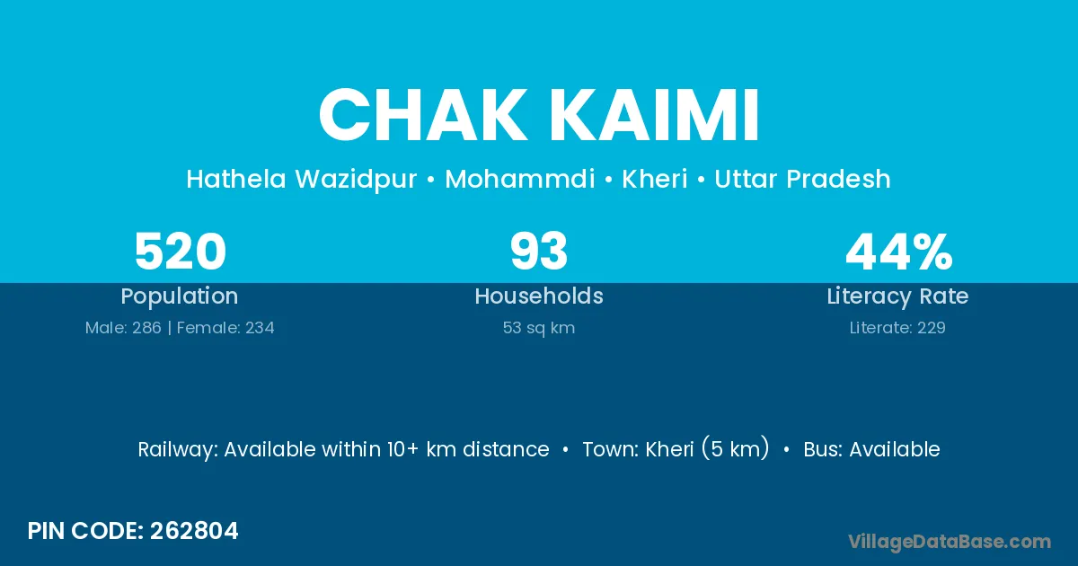 Kheri (5 km) is the nearest town to Chak Kaimi village for major economic activities and is located approximately 5 km away.