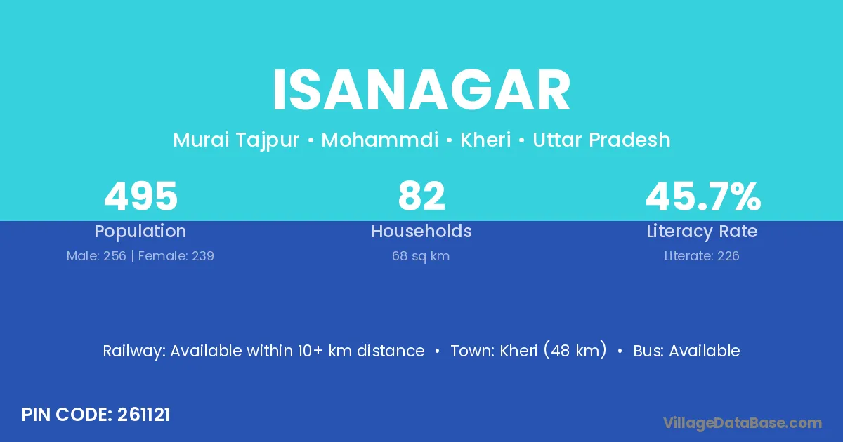 Isanagar village has a total population of 495 people, of which 256 are males and 239 are females.
