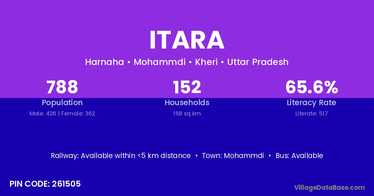 According to Census 2011 information, the village code of Itara village is 261505.