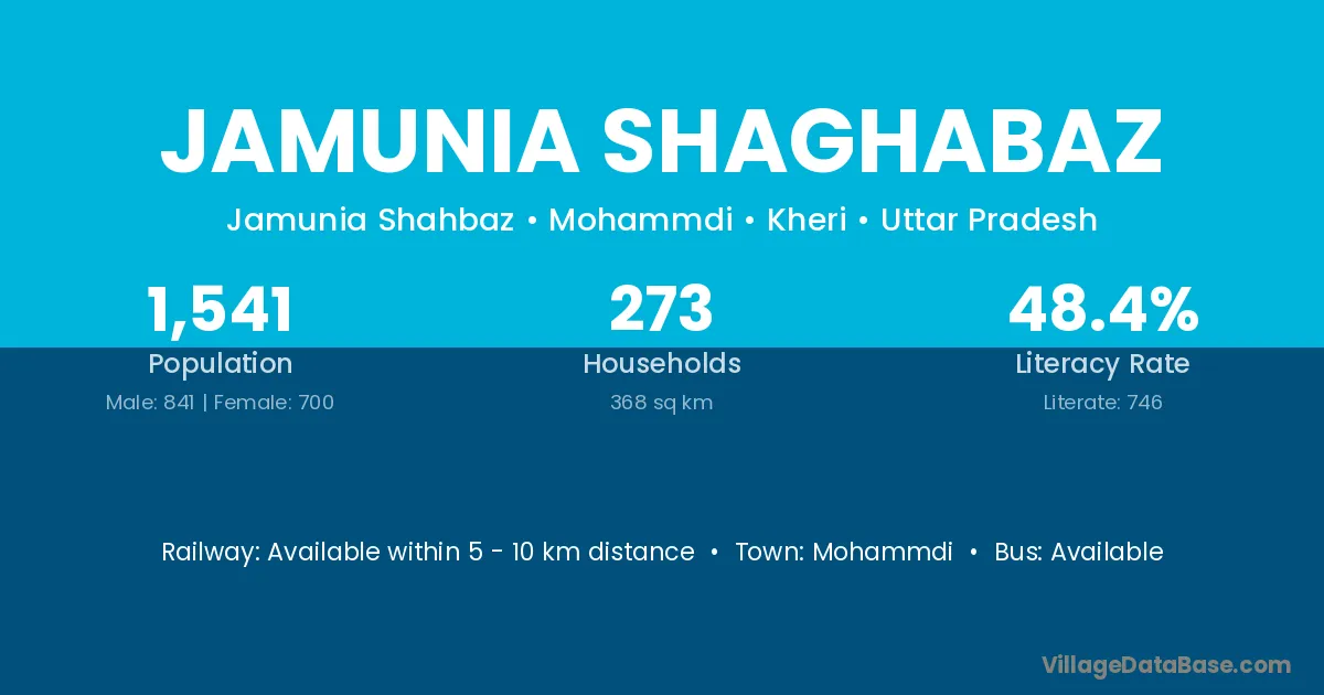 Jamunia Shaghabaz village has a total population of 1,541 people, of which 841 are males and 700 are females.
