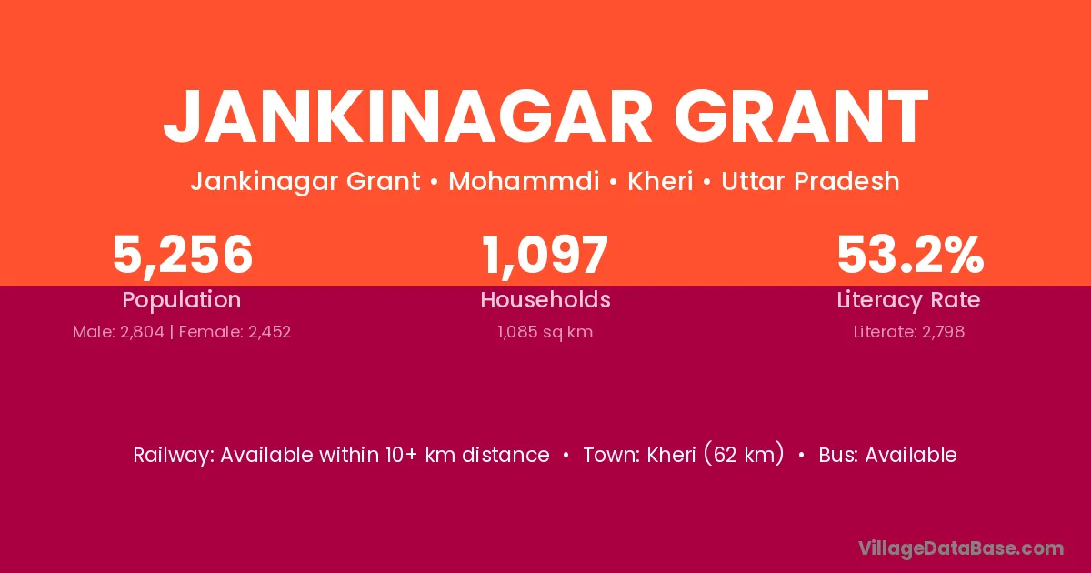 Jankinagar Grant village has a total population of 5,256 people, of which 2,804 are males and 2,452 are females.