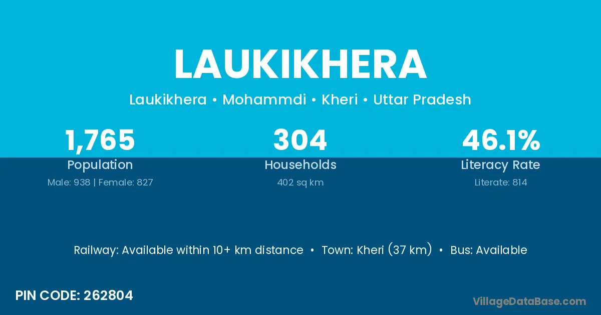 Kheri (37 km) is the nearest town to Laukikhera village for major economic activities and is located approximately 37 km away.