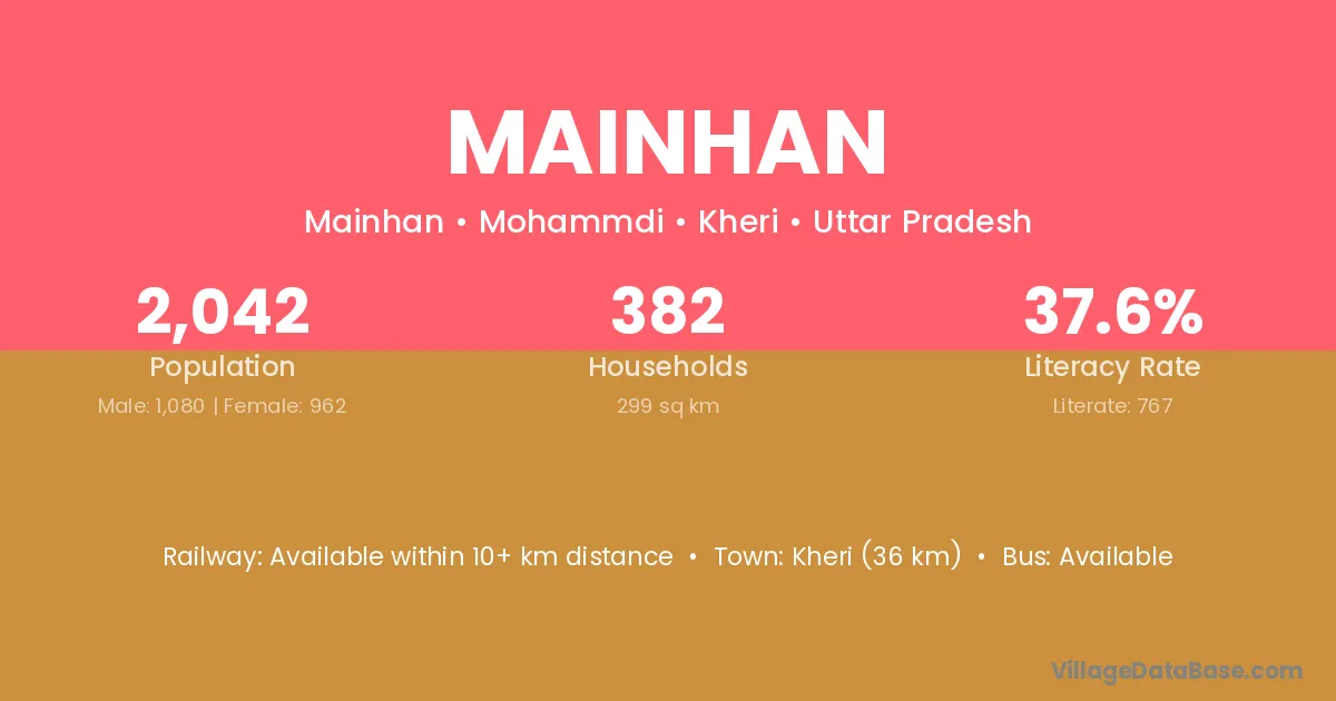 Kheri (36 km) is the nearest town to Mainhan village for major economic activities and is located approximately 36 km away.