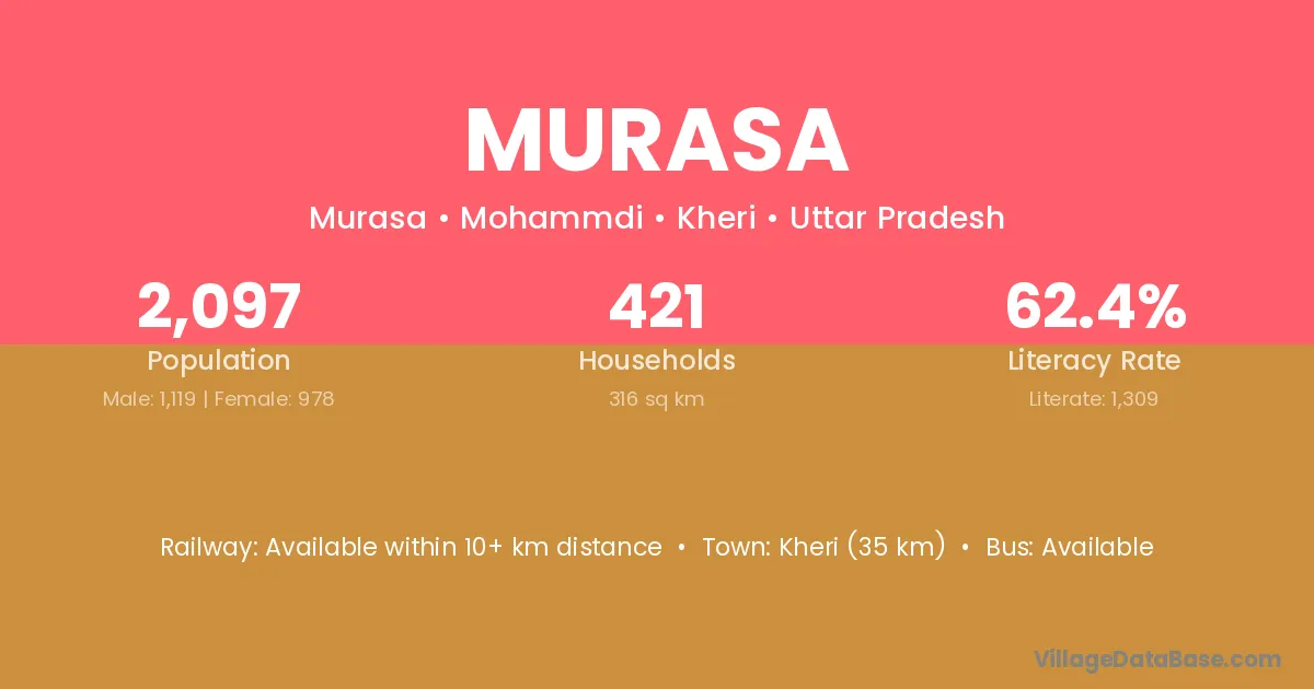 Kheri (35 km) is the nearest town to Murasa village for major economic activities and is located approximately 35 km away.