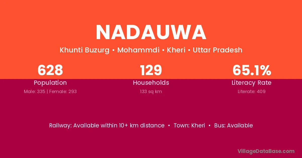 Nadauwa village has a total population of 628 people, of which 335 are males and 293 are females.