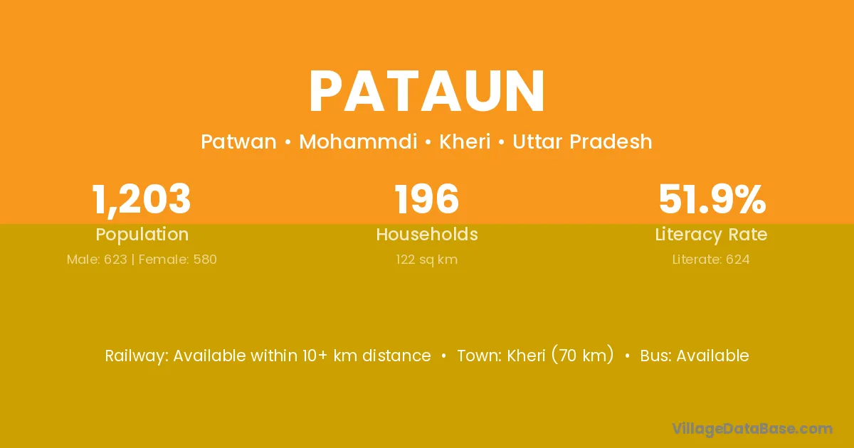 Pataun village has a total population of 1,203 people, of which 623 are males and 580 are females.