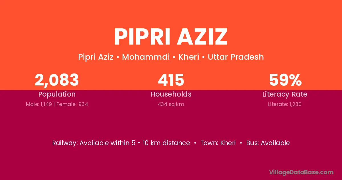 Pipri Aziz village has a total population of 2,083 people, of which 1,149 are males and 934 are females.