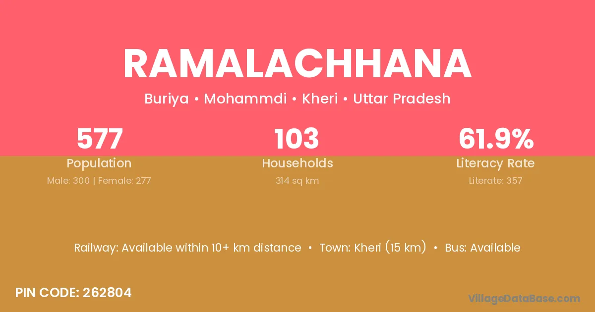 Kheri (15 km) is the nearest town to Ramalachhana village for major economic activities and is located approximately 15 km away.