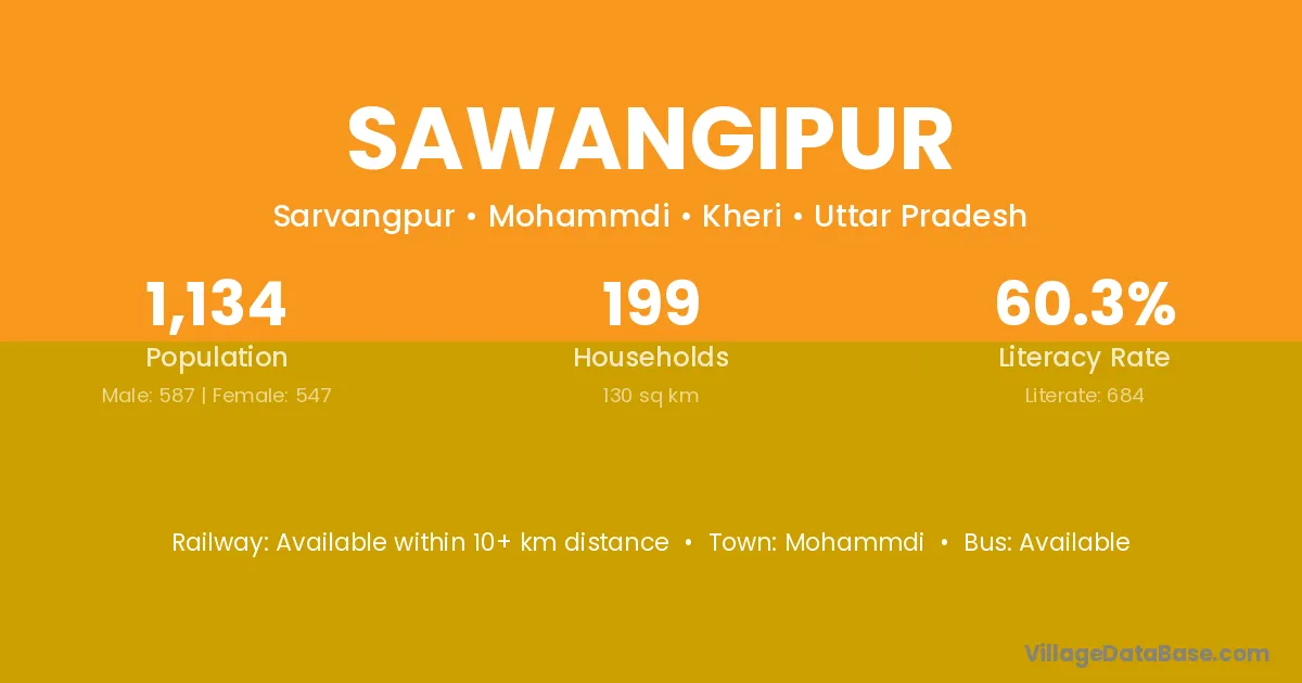 Sawangipur village has a total population of 1,134 people, of which 587 are males and 547 are females.