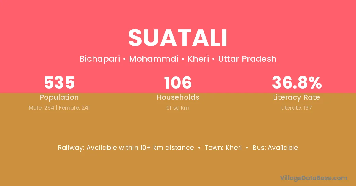 Suatali village has a total population of 535 people, of which 294 are males and 241 are females.