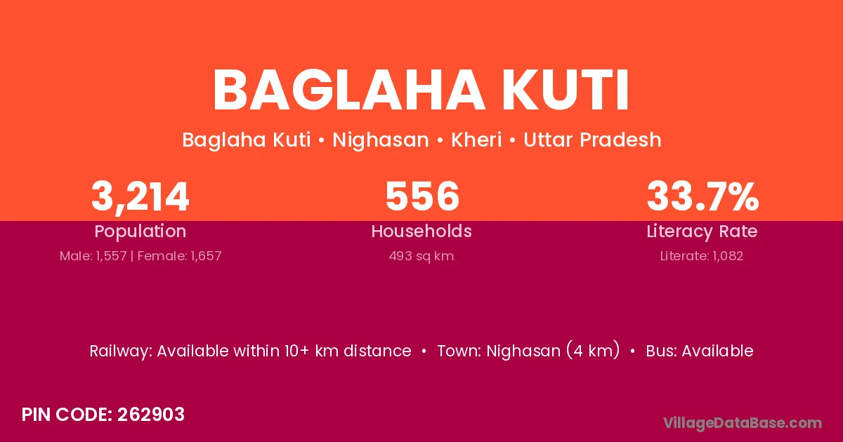 Baglaha Kuti village has a total population of 3,214 people, of which 1,557 are males and 1,657 are females.