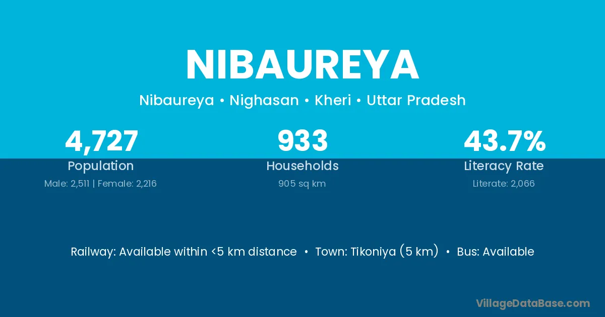 Tikoniya (5 km) is the nearest town to Nibaureya village for major economic activities and is located approximately 5 km away.