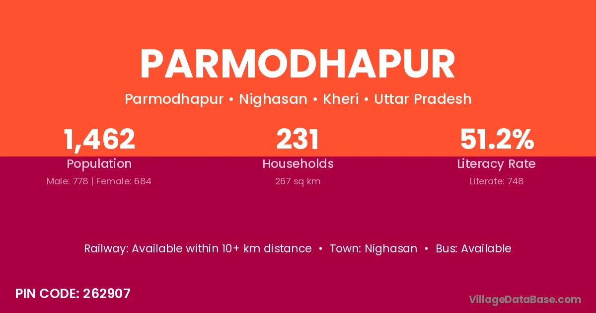 Nighasan is the nearest town to Parmodhapur village for major economic activities