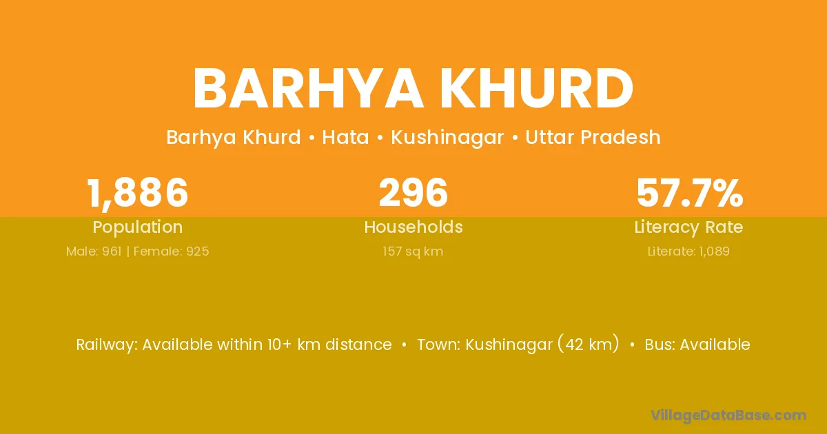 Kushinagar (42 km) is the nearest town to Barhya Khurd village for major economic activities and is located approximately 42 km away.
