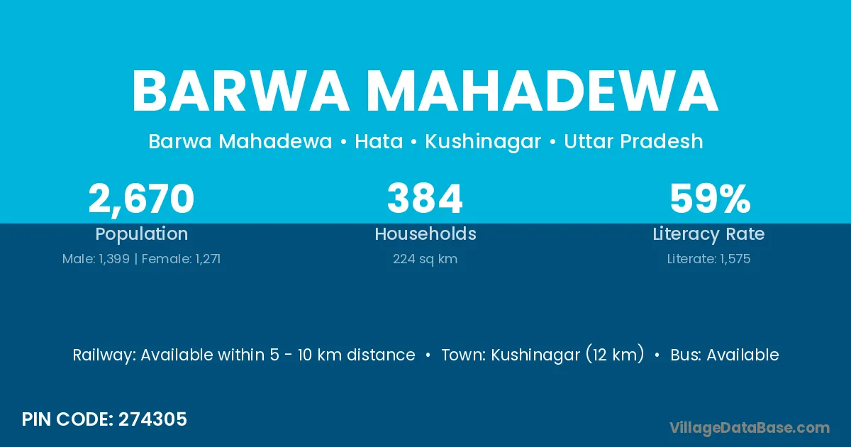 Kushinagar (12 km) is the nearest town to Barwa Mahadewa village for major economic activities and is located approximately 12 km away.