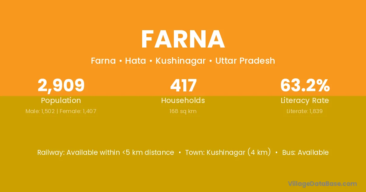 Kushinagar (4 km) is the nearest town to Farna village for major economic activities and is located approximately 4 km away.